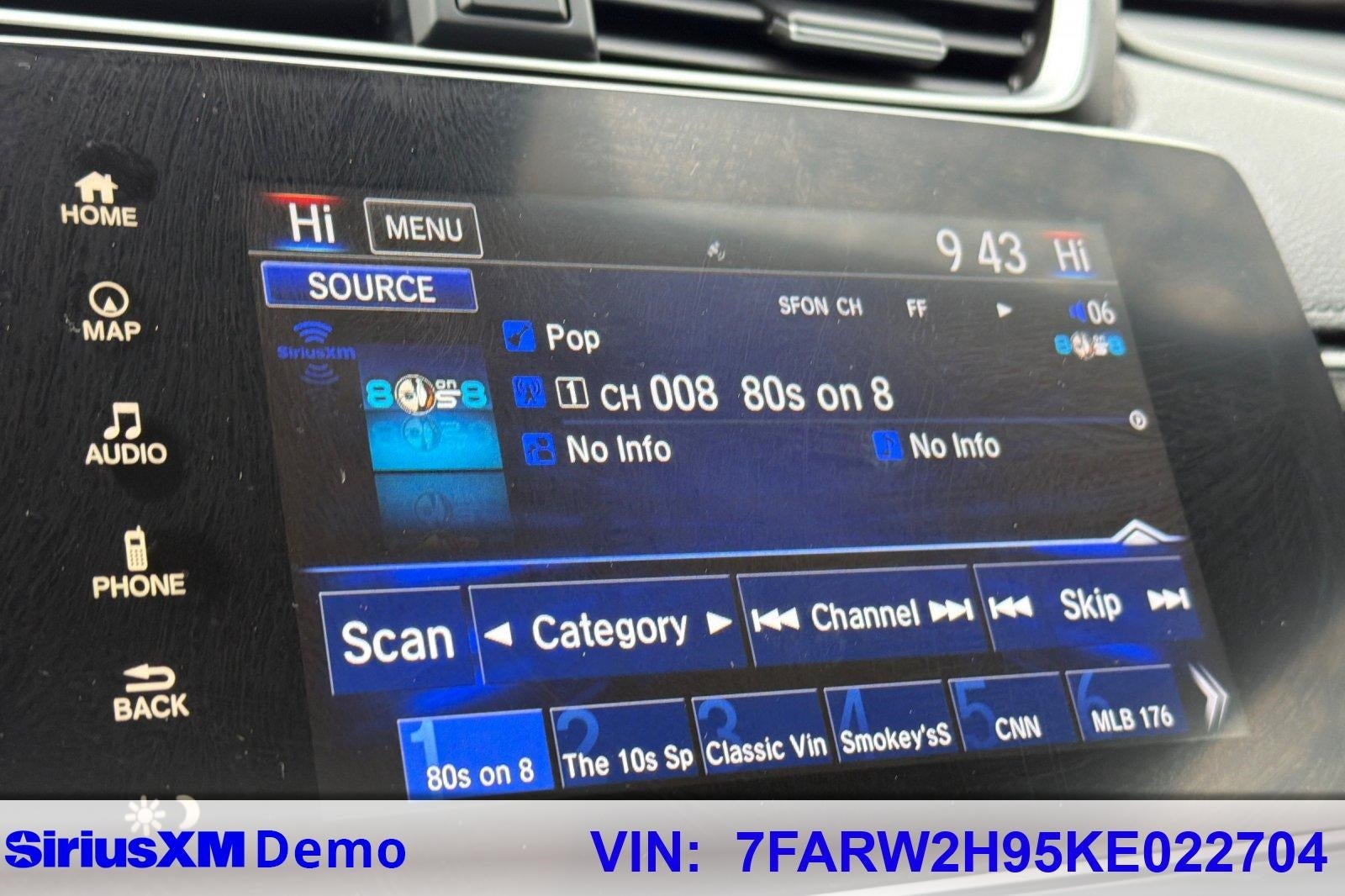 - Radio: AM/FM/HD/SiriusXM Audio System -inc: 330-Watts, 9 speakers including subwoofer, Honda satellite-linked navigation system w/voice recognition, HD digital traffic, turn-by-turn directions, 7" display w/high-resolution WVGA (800x480) electrostatic touch-screen, customizable feature settings, Bluetooth® streaming audio and HandsFreeLink, Pandora compatibility, Radio Data System (RDS), Speed-Sensitive Volume Control (SVC), USB audio interface w/1.0-amp port in center console, USB smartphone/audio interface w/1.5-amp port in center console, 12-volt power outlets (front and center console), HondaLink, Apple CarPlay/Android Auto, SMS text message function and 2.5-Amp charging ports in 2nd-row