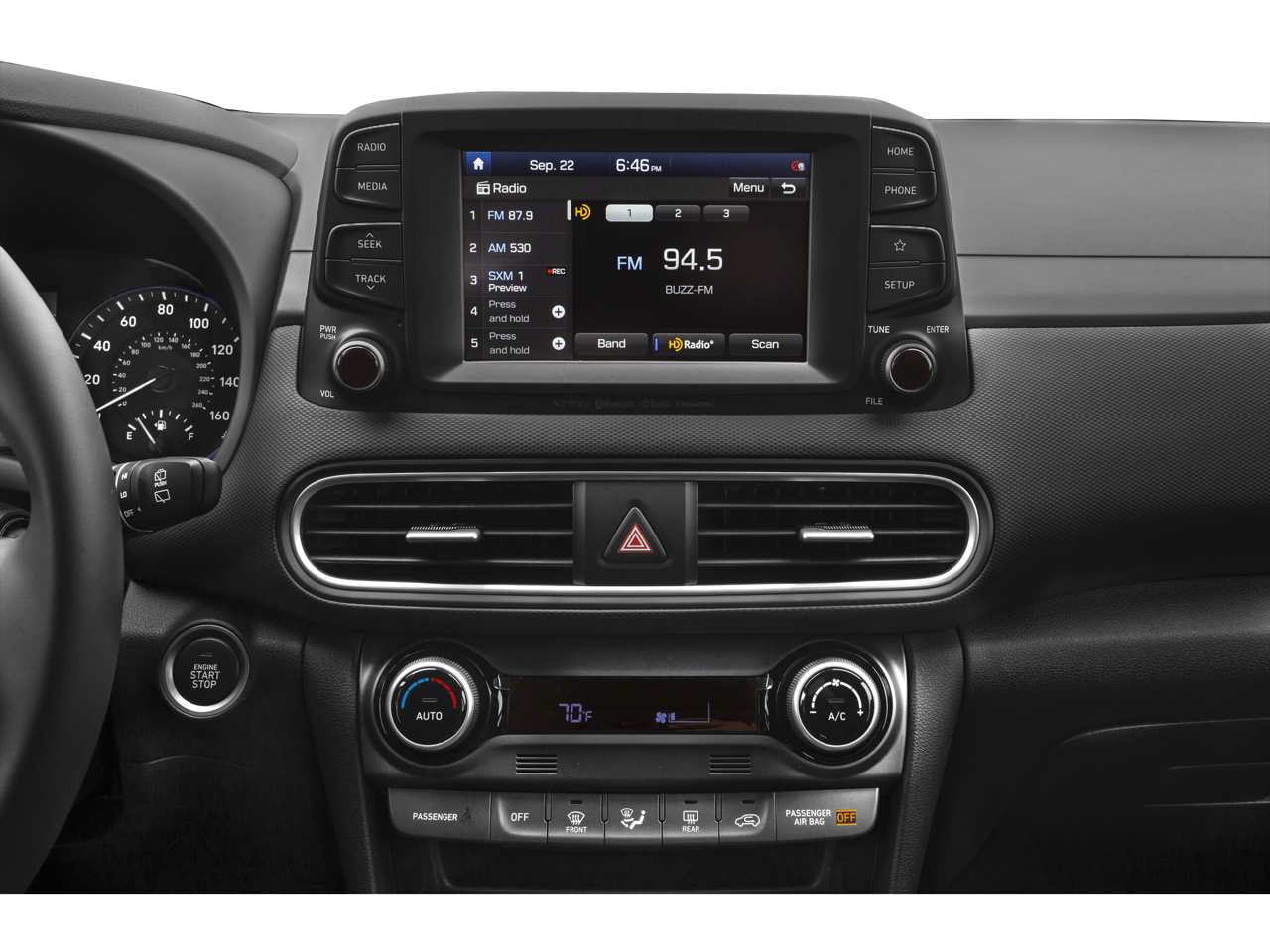 - Radio: AM/FM/MP3/HD Radio/SiriusXM Audio System -inc: 315 Watts, Infinity premium audio w/8 speakers including subwoofer, external amplifier, Blue Link connected car system, Clari-Fi music restoration technology, wireless device charging, VR, 7" LCD touchscreen display, Android Auto, Apple CarPlay, Siri and Google Now support, dual front USB outlets/ auxiliary input jack and Bluetooth®