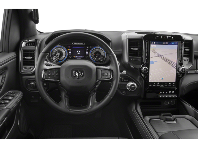 The premium leather-trimmed interior of this Ram 1500 Limited is a true sanctuary, offering unparalleled comfort and refinement. Heated and ventilated front seats, a heated steering wheel, and a premium audio system create an exceptional driving experience.