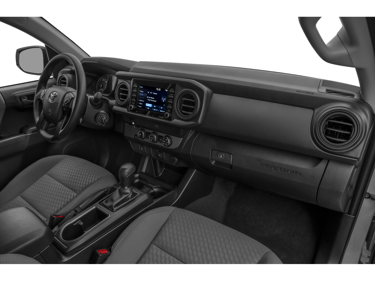 Beyond these thoughtful additions, the Tacoma SR offers a wealth of standard amenities that enhance your driving experience. Enjoy the convenience of Apple CarPlay/Android Auto, the confidence of speed control and traction control, and the added peace of mind from the comprehensive safety suite, including ABS brakes, airbags, and an emergency communication system.
