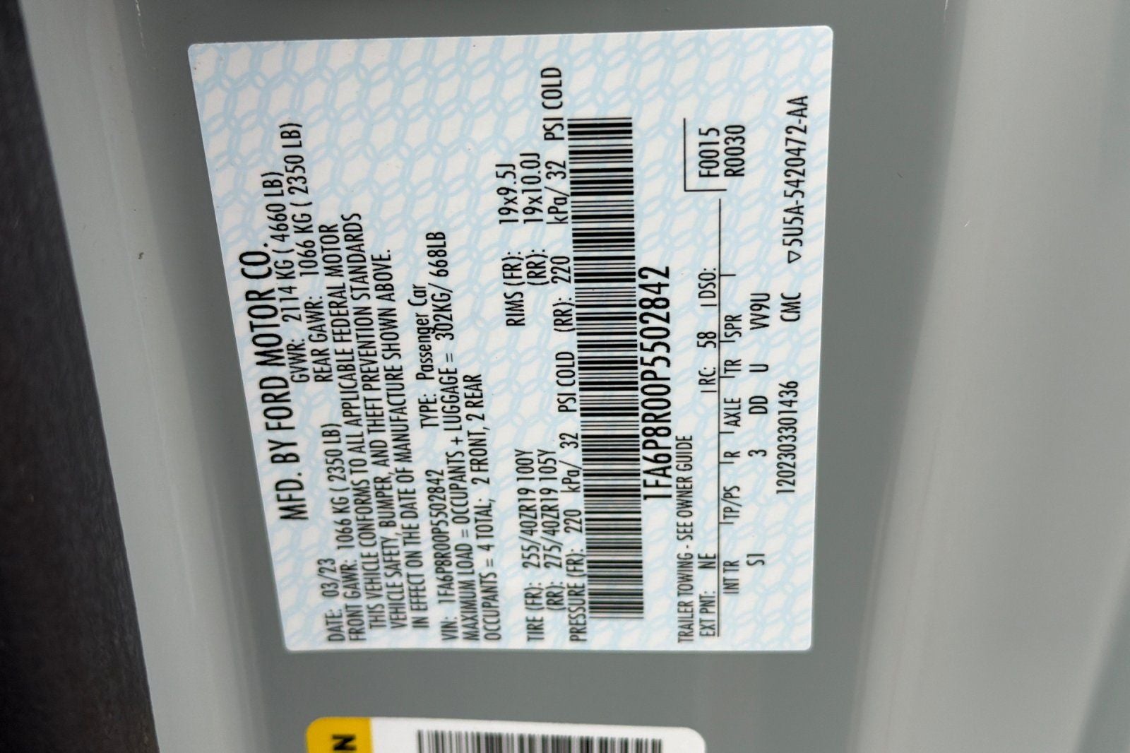 - Vehicle Name: Ford Mustang