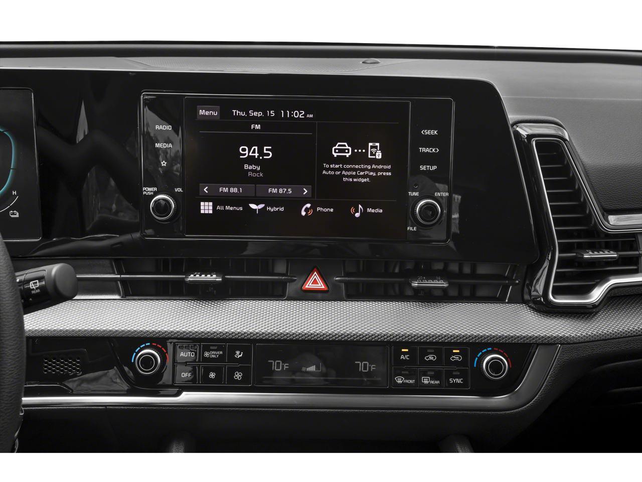 Safety is paramount in the Sportage Hybrid LX, with a suite of advanced features that provide peace of mind. Enjoy the confidence of Electronic Stability Control, Traction Control, and Brake Assist, as well as the added security of Dual Front Impact Airbags, Dual Front Side Impact Airbags, and an Occupant Sensing Airbag.