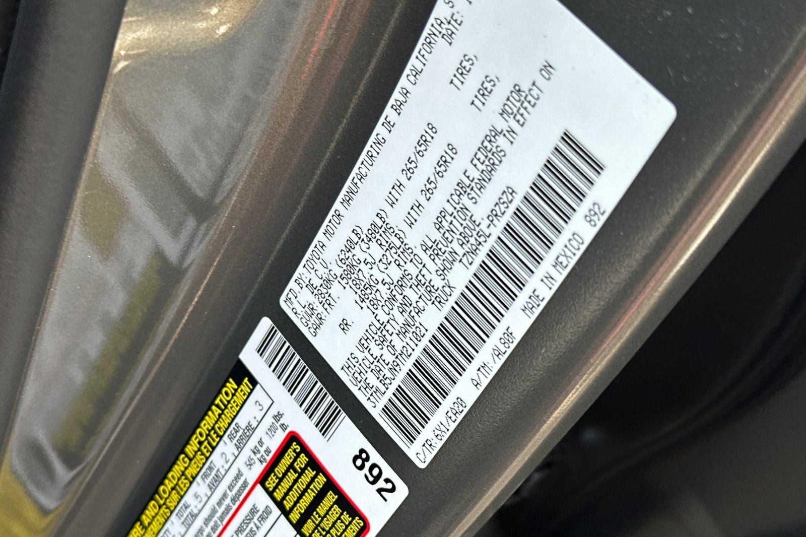 - Vehicle Name: Toyota Tacoma 4WD